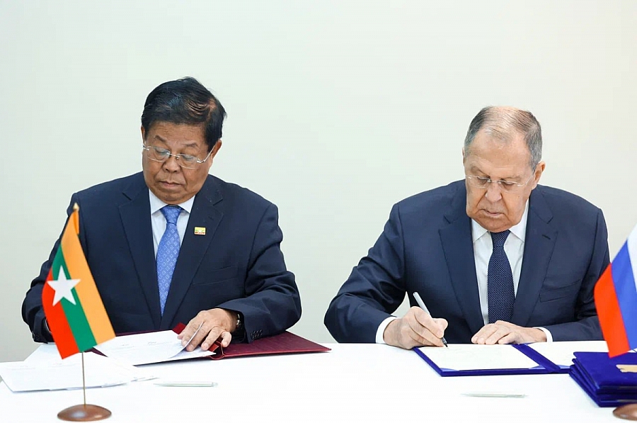"Министр иностранных дел Российской Федерации Сергей Викторович Лавров и министр иностранных дел Республики Союз Мьянма Тан Све подписывают соглашение между правительством Российской Федерации и правительством Республики Союз Мьянма о взаимной отмене визовых требований для граждан России и Мьянмы", – сообщили в ходе церемонии подписания.