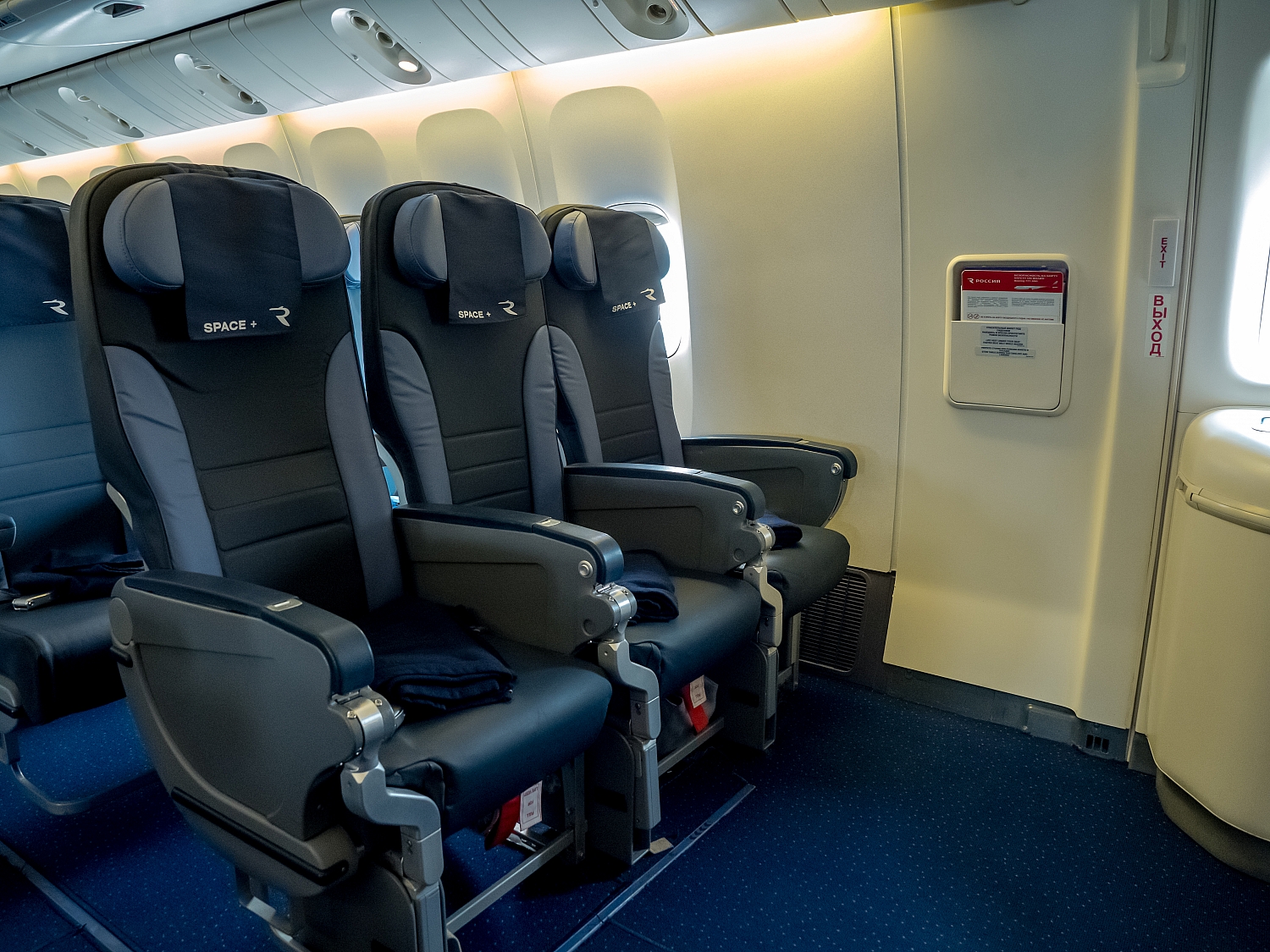 Особенным отличием компоновки лайнера является наличие специальной лаундж-зоны в начале салона в стиле барной стойки. Здесь во время длительного перелета пассажиры экономкласса могут провести время в более комфортных условиях, общаясь с попутчиками.«Мы стараемся создать такие условия, чтобы наши пассажиры сразу приступали к активному отдыху или запланированным делам, а не приходили в себя после длительного перелета», — говорит официальный представитель авиакомпании «Россия» Сергей Стариков.